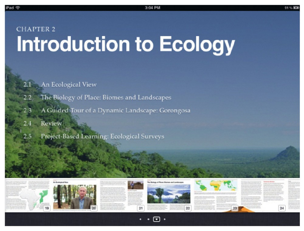 Также можно скачать демонстрационную версию учебника известного биолога Е.О. Уилсона (E.O.Wilson) «Жизнь на Земле» (Life on Earth). В нее вошли вводные статьи и первая глава книги. По словам издателя, новые главы будут регулярно поступать в iBookstore в течение следующих двух лет. На примере этой работы можно освоить обращение с электронным учебником и оценить преимущества такого стиля обучения.