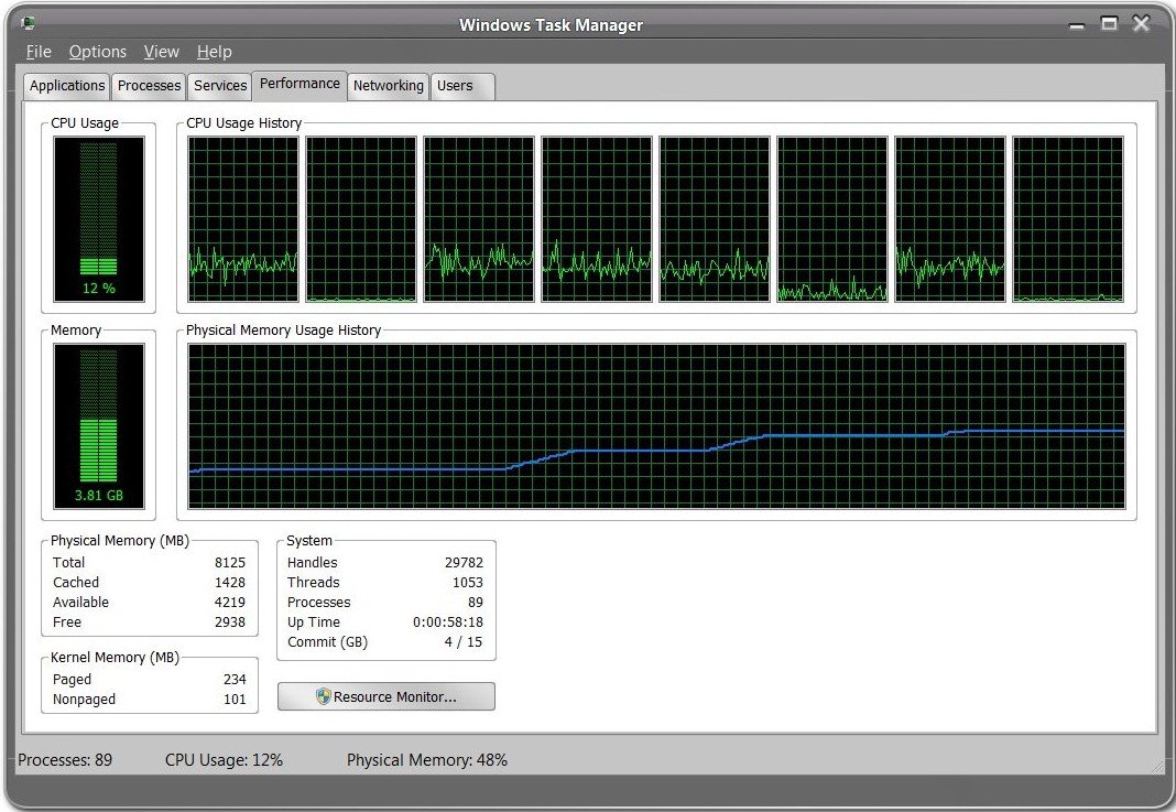 Если вы хотите запустить одновременно несколько задач или поиграть в игры, а система демонстрирует явно не ту производительность, к которой вы привыкли, займитесь поиском причин по научной методике. Быть может, какое-то приложение работает в фоновом режиме и пожирает все системные ресурсы. Запустите Диспетчер задач Windows и проверьте объем доступной памяти и загрузку процессора. Вполне вероятно, скачивание огромного файла через Steam или uTorrent съедает всю пропускную способность канала и тормозит сетевую игру. Возможно, какое-то время вы не загружали систему, и теперь она выполняет операции сканирования вирусов, создания резервных копий файлов, обновления Windows и бог весть чего еще.