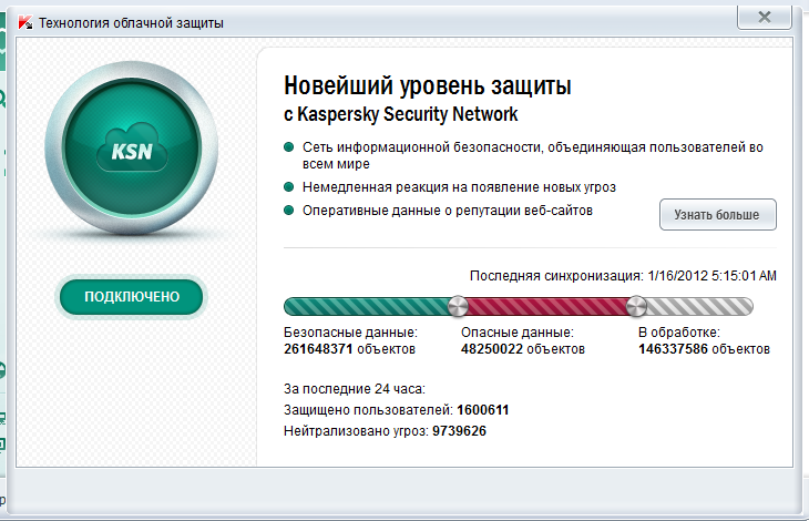 Эта возможность появилась не только в CRYSTAL, но и в более привычном многим KIS 2012. В последних версиях своих продуктов «Лаборатория Касперского» активно использует все преимущества облачных технологий. Проверка репутации файлов – как раз тот случай, где облака незаменимы.
