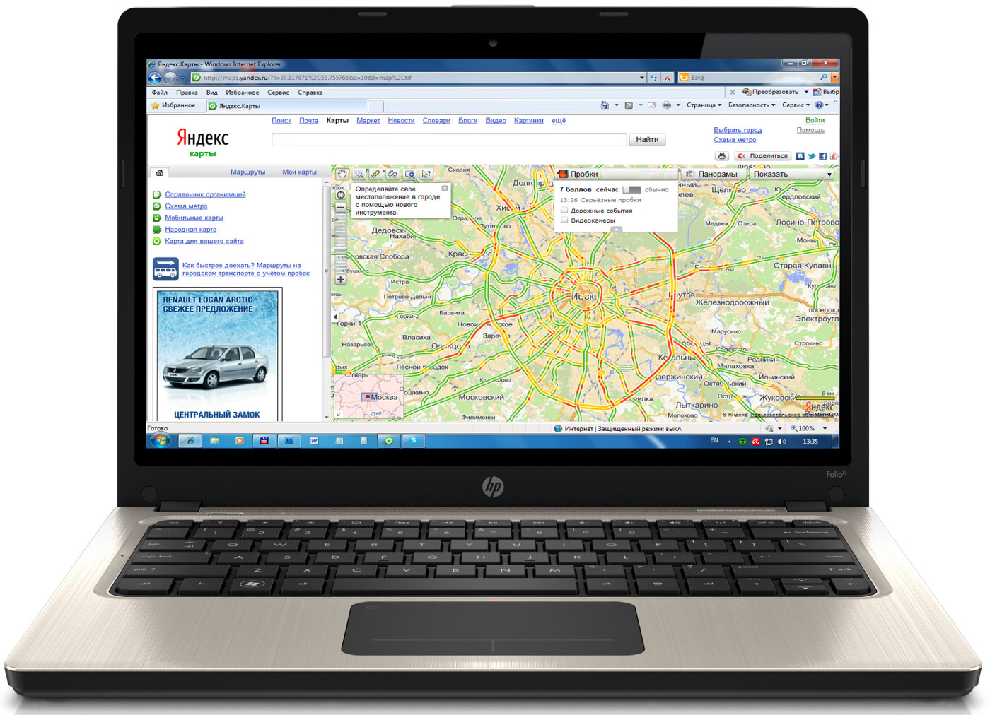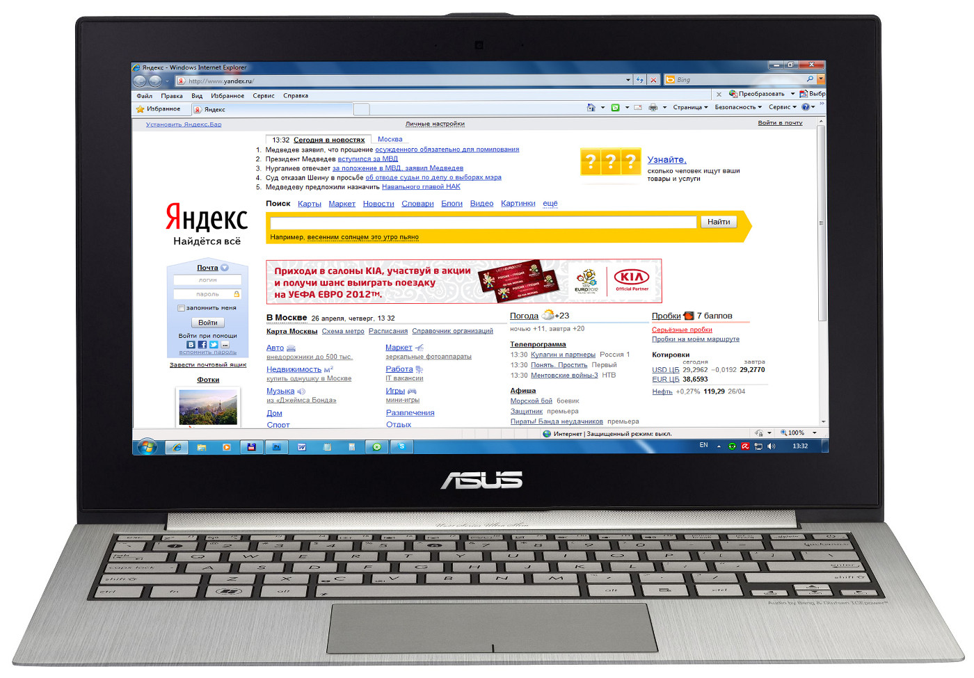 В аппарате установлена матрица с диагональю 13,3 дюйма и разрешением в 1366x768 точек. Цветопередача, яркость и контрастность просто превосходные, а вот углы обзора оказались не самыми лучшими -- даже при небольшом отклонении крышки качество картинки существенно ухудшается.