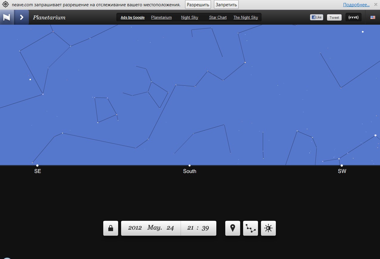 Задайте в Planetarium свое местоположение, и вы увидите созвездия,
