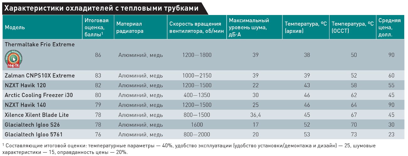 Как показали испытания, почти все протестированные охладители успешно справляются со своей задачей, обеспечивая достойный отвод тепла. Но больше всего нам понравился Thermaltake Frio Extreme, который показал весьма впечатляющие результаты. Ему мы и присудили значок «Выбор редакции».