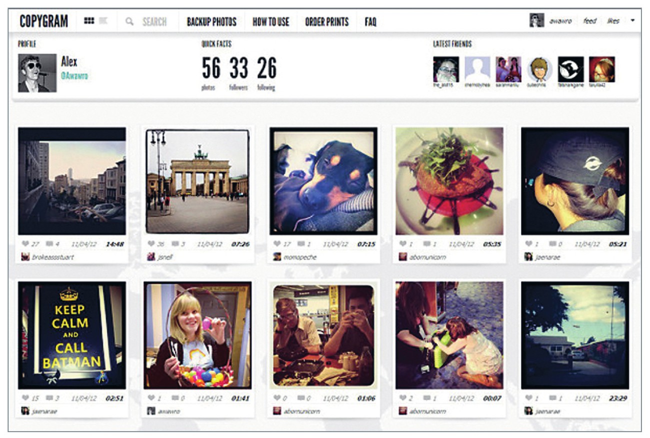 Если Instaport не в состоянии удовлетворить вашим потребностям, на помощь придет ресурс Copygram (copygr.am), позволяющий любому желающему оформить подписку на услуги Instagram и начать обмениваться фотографиями прямо в среде браузера. Этот сервис будет весьма полезен для тех, кто не имеет устройств с iOS и Android, но хочет присоединиться к сообществу Instagram.