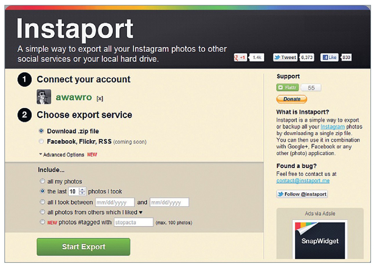 | Instaport упрощает процедуру экспорта фотобиблиотеки Instagram на собственный жесткий диск или в другую социальную сеть |