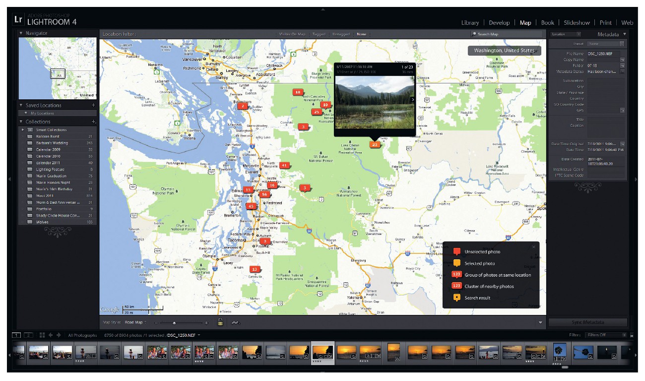 Среди видимых изменений в глаза бросаются два новых модуля. Один из них, Map, работает в тандеме со смартфонами, оснащенными приемником GPS. При импорте фотографий с географической привязкой к местности вы можете размещать их в упорядоченном виде в Google Maps. Большинство фотоаппаратов не поддерживают географическую привязку к местности, поэтому Lightroom позволяет самостоятельно перемещать фотографии по карте или привязывать группы снимков к ранее сохраненному местоположению.