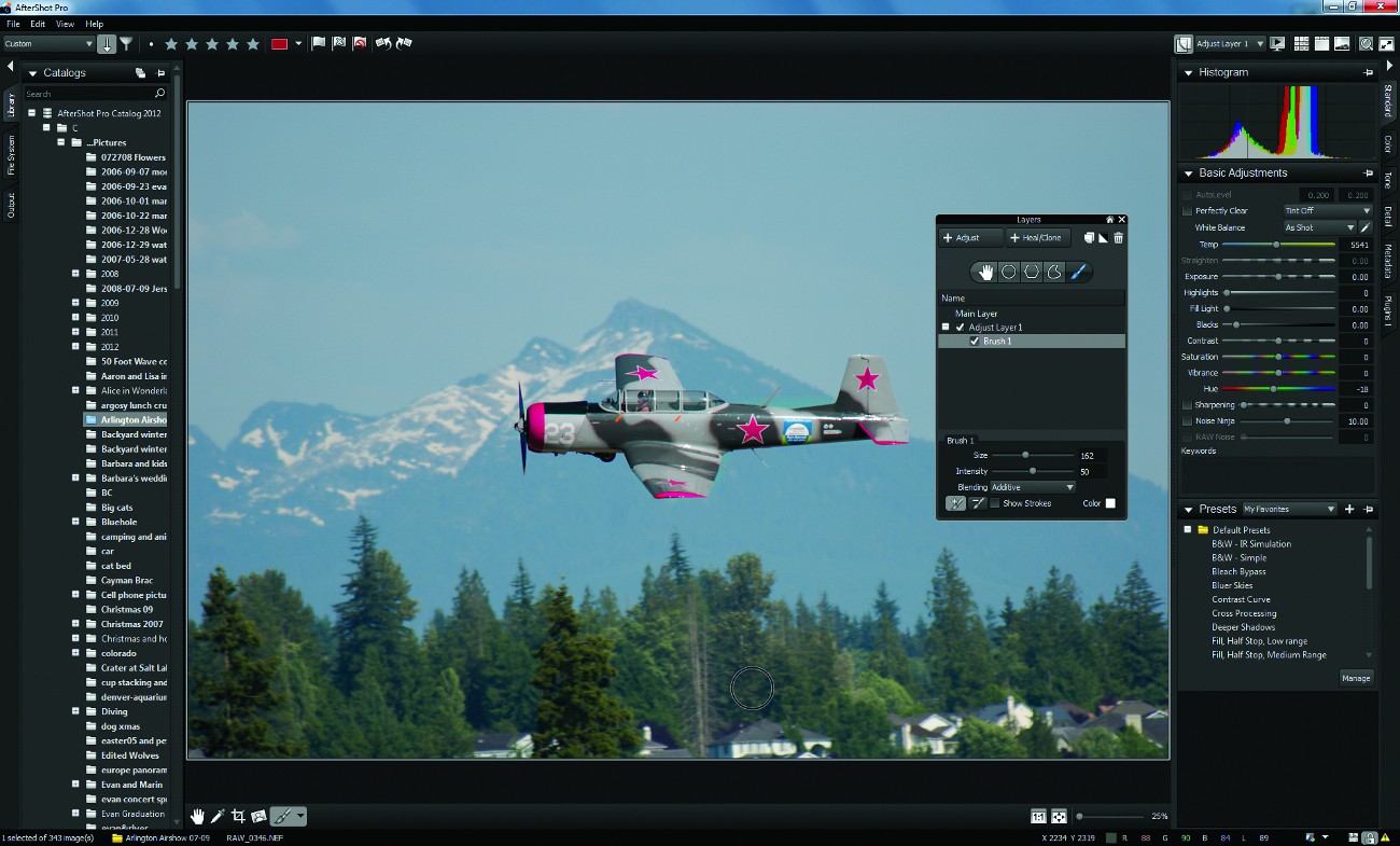 В AfterShot реализована элегантная система управления слоями. Можно внести в фотографию ряд существенных изменений или предварительно выбрать с помощью инструментов выделения желаемый слой. Добавление нескольких слоев и оперативное переключение между ними не вызывает никаких сложностей. Программа позволяет даже инвертировать слой (этот трюк весьма популярен в полнофункциональных графических редакторах, однако в специализированных программах наподобие AfterShot функции подобного рода встречаются достаточно редко). Пользователь получает доступ ко всем стандартным опциям выделения, включая задание размера кисти, интенсивности и режимов сопряжения на основе сложения/вычитания сопрягаемых элементов. Не менее эффектно в CyberLink PhotoDirector 3 выглядят инструменты выделения с помощью магнитного лассо и градиентного фильтра.
