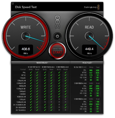 Еще более сильное впечатление произвело быстродействие флеш-памяти. При непосредственном подключении встроенного твердотельного диска к системной плате MacBook Pro пропускная способность интерфейса SATA не служила препятствием, и скорость выполнения операций чтения/записи увеличилась почти вдвое по сравнению с обеспечиваемой типичным твердотельным диском потребительского класса. Обычный твердотельный накопитель выполняет операции со скоростью 200--250 Мбайт/с, тогда как MacBook Pro продемонстрировал скорость записи на уровне 400 Мбайт/с, а чтения – 448 Мбайт/с.