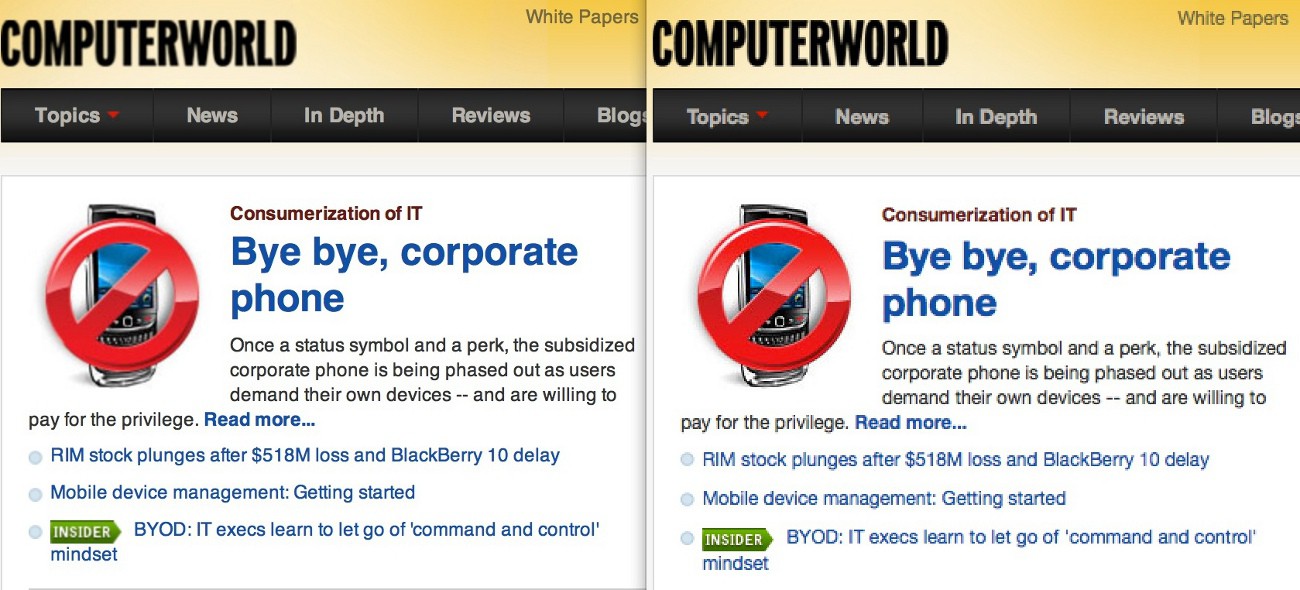 | На снимке экрана видно, что браузер Safari демонстрирует более четкий текст и изображение, чем Firefox, потому что программное обеспечение Safari обновлялось с учетом особенностей нового дисплея |