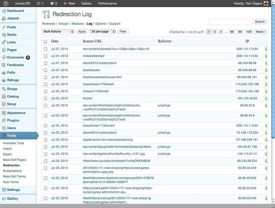 Бесплатный плагин Redirection поможет справиться с этой и другими неприятными ситуациями. Он автоматически отслеживает изменение адресов URL и организует переадресацию 301, благодаря которой браузеры и поисковый механизм Google понимают, что старый контент перемещен на новое место. Переадресацию можно импортировать из существующего файла. htaccess или файла в формате CSV и настроить вручную с помощью регулярных выражений, позволяющих изменить все запросы лишь одной формулой. При каждом вызове такой переадресации подробная информация об этом заносится в журнал событий.