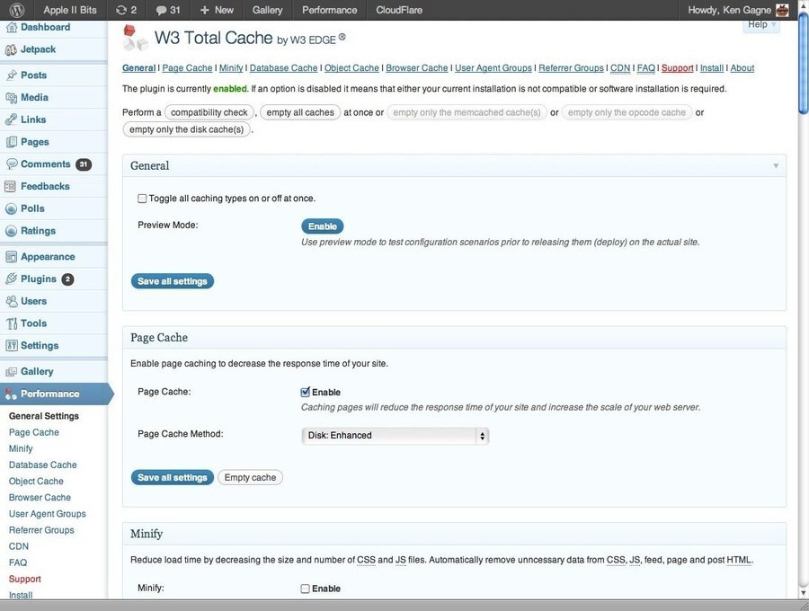 Чтобы минимизировать потребление сайтом ресурсов, воспользуйтесь бесплатным модулем расширения W3 Total Cache. Система WordPress динамически генерирует страницы, которые становятся видны пользователям после обращения к базе данных MySQL. Результаты выполнения наиболее общих запросов W3 сохраняет в виде статических файлов HTML.