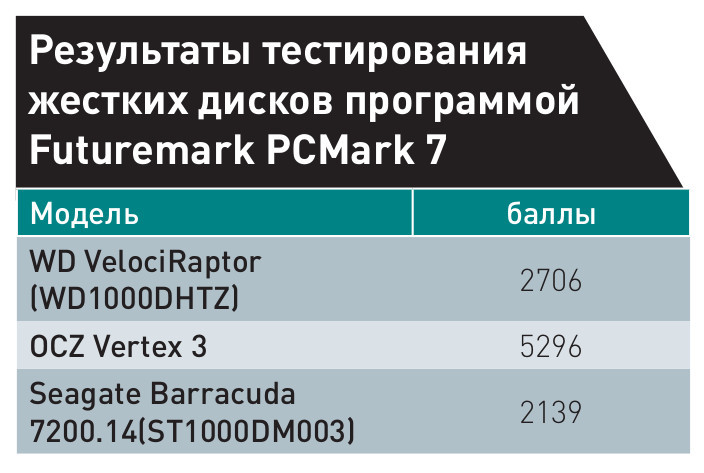 Абсолютные показатели тестов поначалу не впечатляют. Однако в сценарном тесте PCMark по двум ключевым показателям (в играх и по скорости запуска приложений) Raptor обогнал Barracuda на треть, а это немало. Правда, при этом SSD оказался быстрее скоростного жесткого диска в 9 раз.