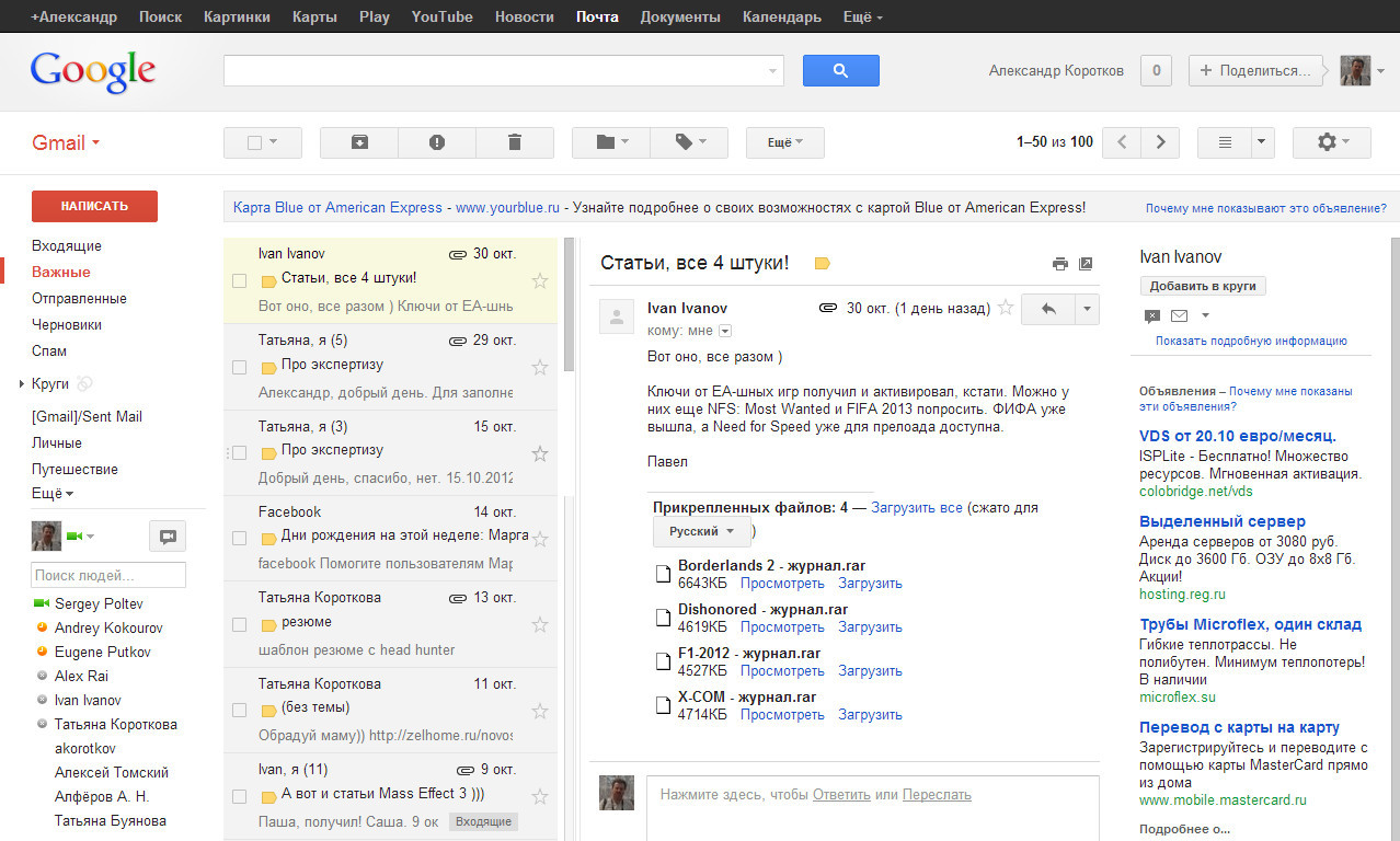 | Экспериментальная панель «Область просмотра», разработанная компанией Google для Gmail, позволяет мгновенно осуществлять предварительный просмотр сообщений |