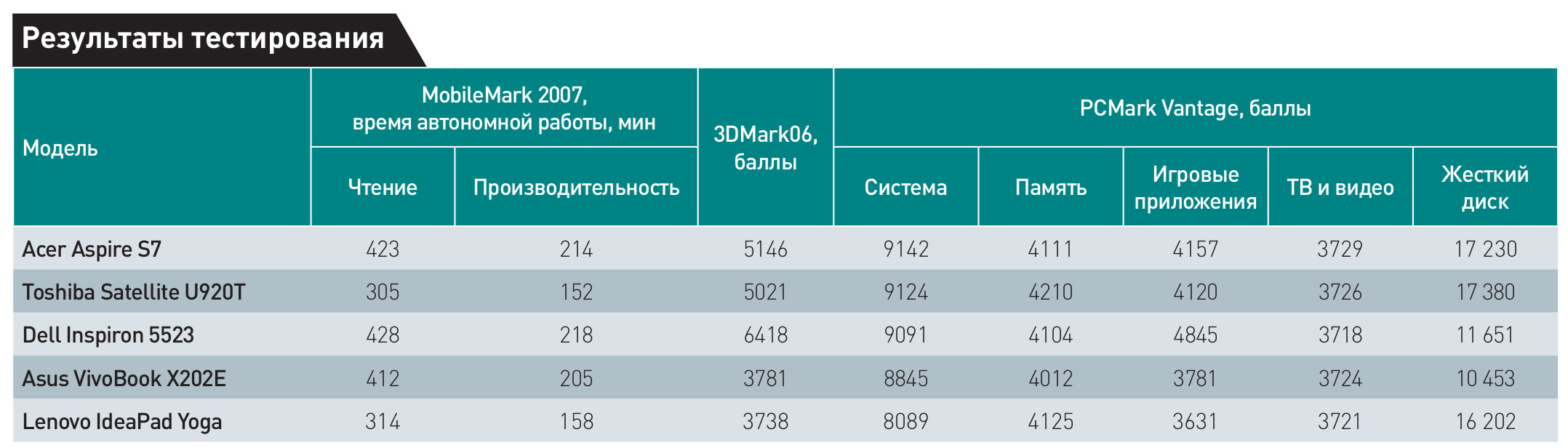 Что же касается наших традиционных предпочтений, то «Лучшей покупкой» мы посчитали Asus VivoBook X202E — при стоимости чуть выше 20 тыс. руб. эта модель отличается неплохим дизайном и хорошей функциональностью. А вот «Выбор редакции» пал на Acer Aspire S7 — это устройство оказалось наиболее интересным среди протестированных нами.