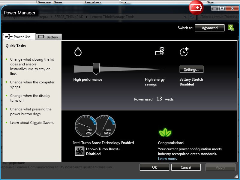 А набор приложений ThinkVantage Tools, понятное дело, никуда не делся – просто их теперь надо вызывать из Панели управления или из меню «Все программы».