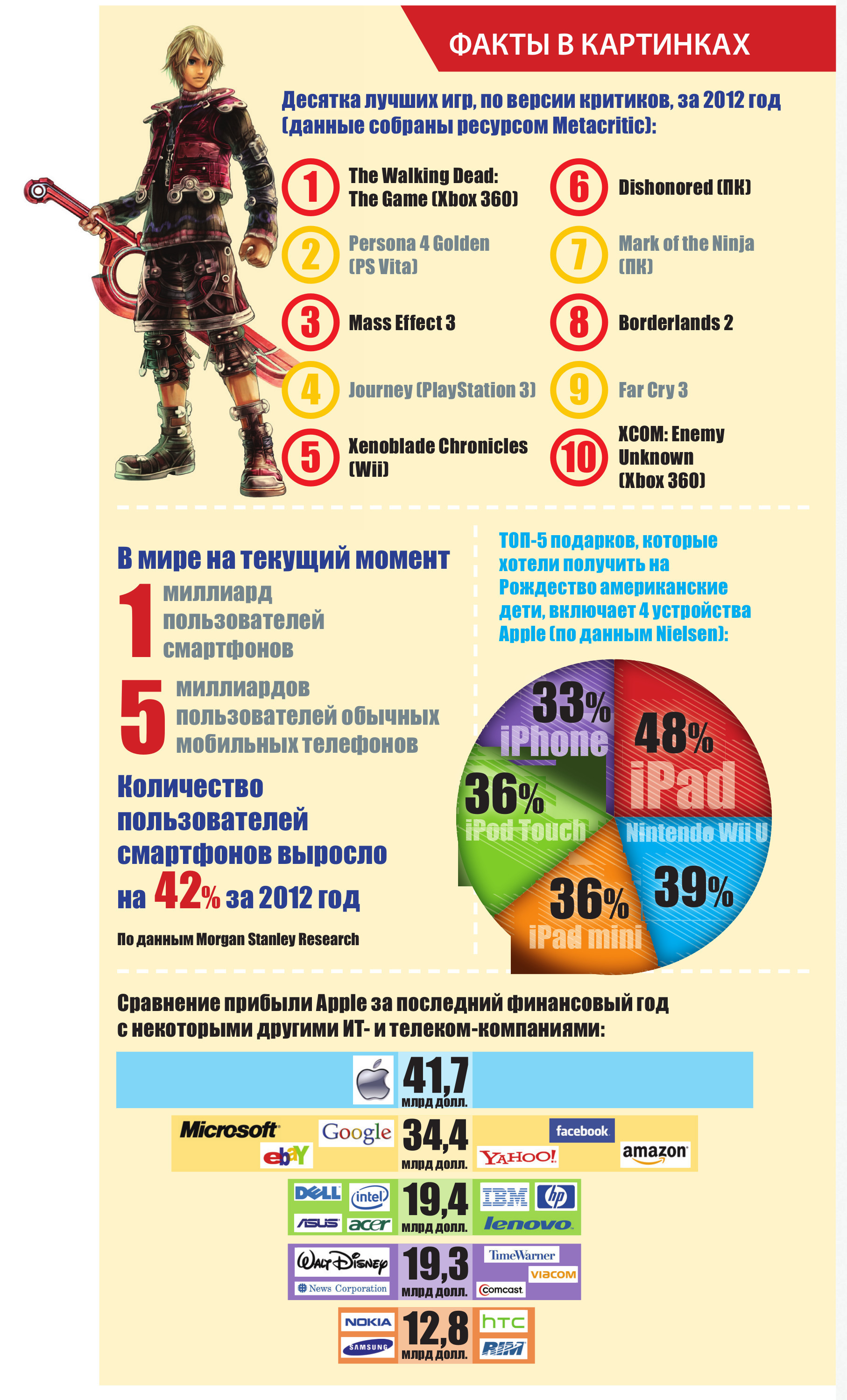 Согласно статистике, предоставленной компанией Apple, семейство iPad показывает в 3 раза более высокие продажи, чем iPhone. В 2013 г. планируется реализовать не менее 100 млн этих планшетов.