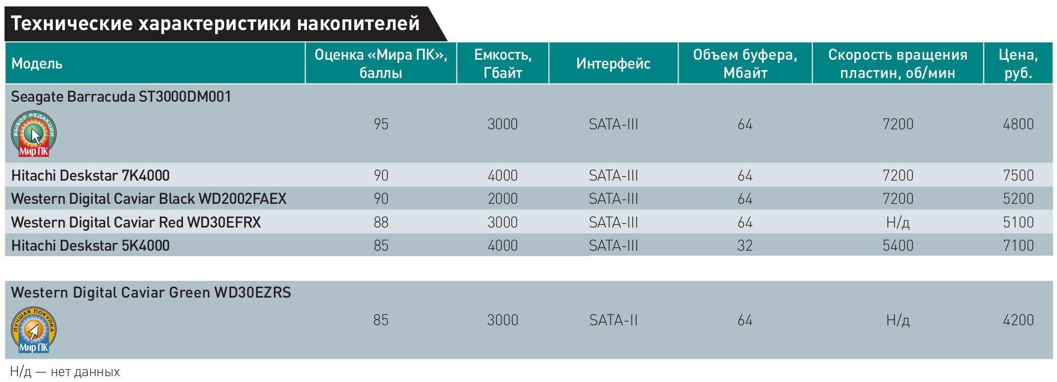 Компания Hitachi пошла дальше своих конкурентов, выпустив первые в мире жесткие диски емкостью 4 Тбайт со скоростью вращения пластин 7200 и 5400 об/мин. Модели Deskstar 7K4000 и Deskstar 5K4000 продаются и в России, правда, цены на них совершенно не радуют — нижний порог начинается от 7 тыс. руб. Таким образом, по стоимости хранения 1 Гбайт информации они уступают некоторым дискам емкостью 3 Тбайт, например Seagate Barracuda ST3000DM001, рассмотренному в данной статье .