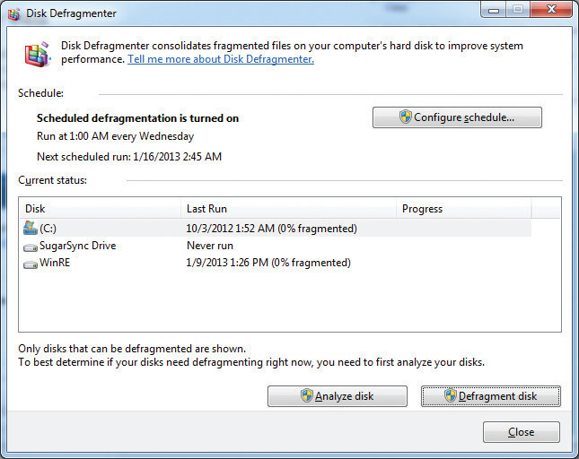 | В новых версиях Windows процедура дефрагментации диска автоматически запускается раз в неделю |