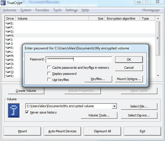 Когда вы захотите вновь обратиться к этим файлам, нужно будет повторно смонтировать том в среде TrueCrypt, поэтому позаботьтесь о том, чтобы не потерять файл тома и не забыть пароль. Что касается паролей…