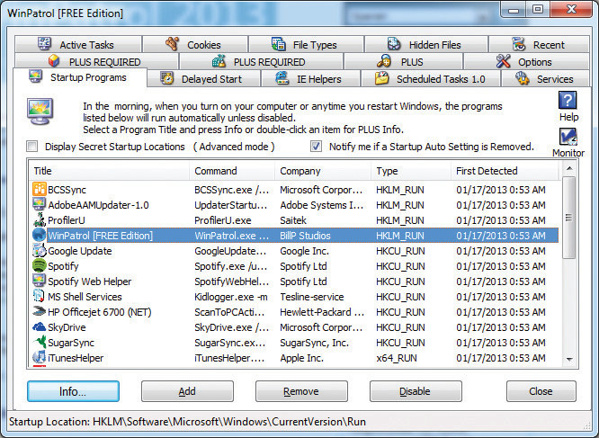 | Приложение WinPatrol помогает составить расписание запуска программ в процессе начальной загрузки системы |