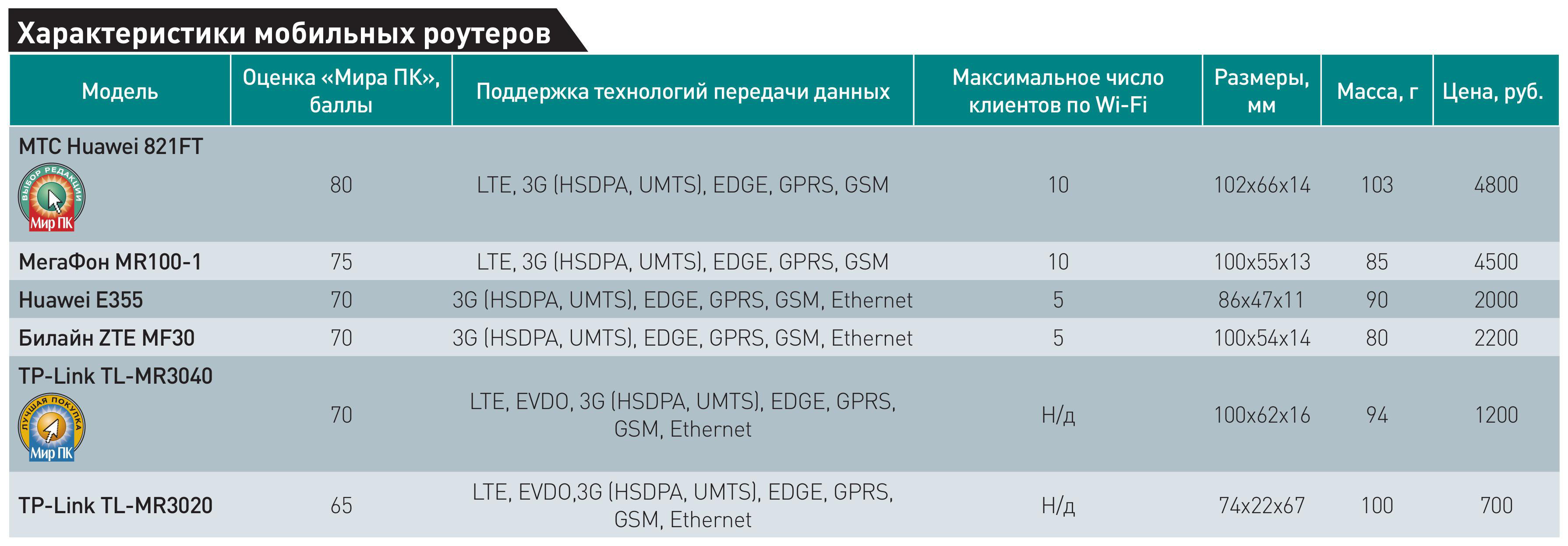 Наше тестирование показало, что мобильные роутеры действительно весьма удобны, особенно тогда, когда нужно развернуть небольшую сеть для нескольких пользователей. Конечно, у всех протестированных нами моделей мы обнаружили как достоинства, так и недостатки. «Лучшей покупкой» мы посчитали модель TP-Link TL-MR3040 за высокую функциональность при весьма демократичной цене. «Выбор редакции» достался роутеру МТС Huawei 821FT, который оказался наиболее быстрым и удобным в эксплуатации среди рассмотренных нами моделей.