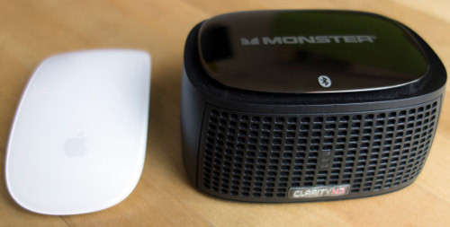 Сначала попробовал совсем маленькую акустическую систему Monster ClarityHD Precision Micro, умещающуюся на ладони. Она предназначена в первую очередь для мобильных нужд. Там даже встроенный аккумулятор имеется, которого хватает на несколько часов. По традиции Monster не раскрывает вообще никаких технических характеристик, и потому звуковые параметры можно оценивать лишь субъективно. Вопреки размерам, мощности динамиков вполне хватает для покрытия комнаты площадью 25–30 м 2 , причем даже при максимальной громкости нет признаков «захлебывания». Звучание басовитое, но с существенным уклоном в верхние частоты. Средние скорее обозначаются, чем воспроизводятся. Стереобаза ощущается, но она невелика. Ничего не поделаешь: законы физики -- штука упругая.