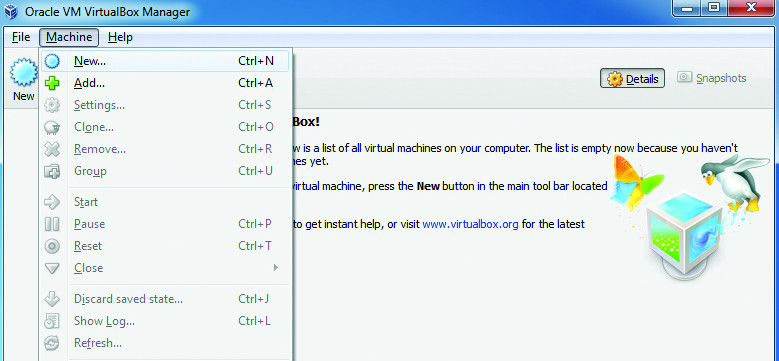 | Выберите из ниспадающего меню VirtualBox Machine пункт New |