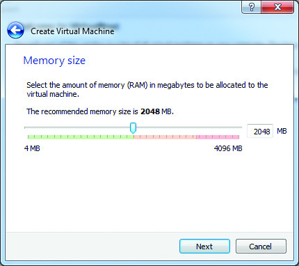 | Для выделения виртуальной машине нужного объема памяти перемещайте бегунок |