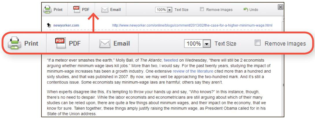 Расширение браузера Google Chrome Print Friendly and PDF позволяет вывести печать на более высокий интеллектуальный уровень. Программное обеспечение удаляет с веб-страниц рекламу и прочий мусор, форматирует их для печати и предоставляет пользователю возможность дополнительно исключить нежелательные для него элементы. В полном соответствии со своим названием, программа позволяет выводить веб-страницы так, словно это страницы хорошо отформатированного документа PDF.