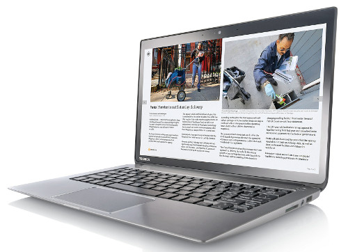 Компания Toshiba по праву гордится жесткостью своего ноутбука, корпус которого сделан из магниевого сплава, но вот крышка дисплея показалась нам довольно хлипкой. Есть опасения, что при неосторожном обращении ее можно повредить. Вторая половина корпуса, защищающая клавиатуру и системную плату, несмотря на свою малую толщину, выглядит гораздо более прочной. Устройство имеет массу всего 1,35 кг. Клавиатура с подсветкой обладает хорошей тактильной обратной связью, к сенсорной панели также никаких нареканий не возникало.