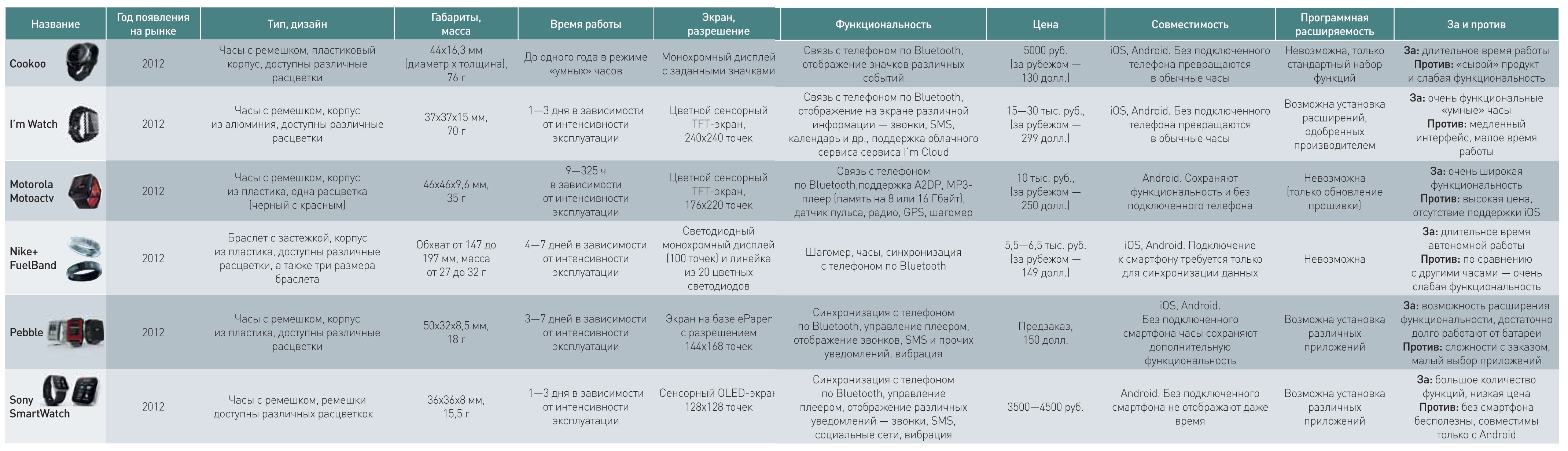 И в завершение, чтобы помочь вам выбрать «умные» часы, мы подготовили сводную таблицу с актуальными и популярными моделями устройств этой категории.