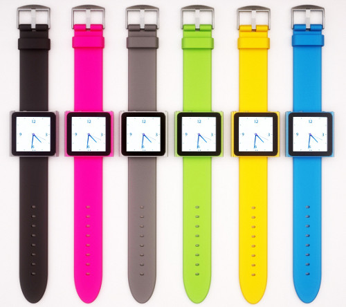А вот в сентябре 2010 г. все та же фруктовая компания с повышенным содержанием «железа» выпустила устройство iPod Nano 6-го поколения, которое можно было вставлять в специальный ремешок. После этого (а может быть, и просто синхронно с этим) таких продуктов стали производить все больше и больше.