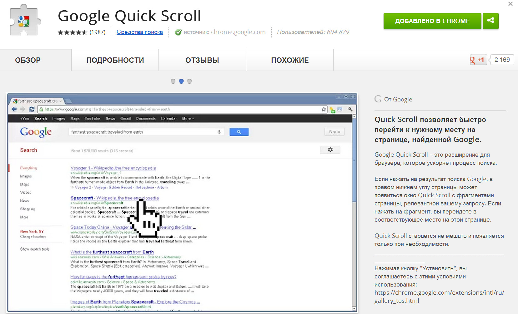 | Google Quick Scroll — расширение для браузера, ускоряющее процесс поиска |