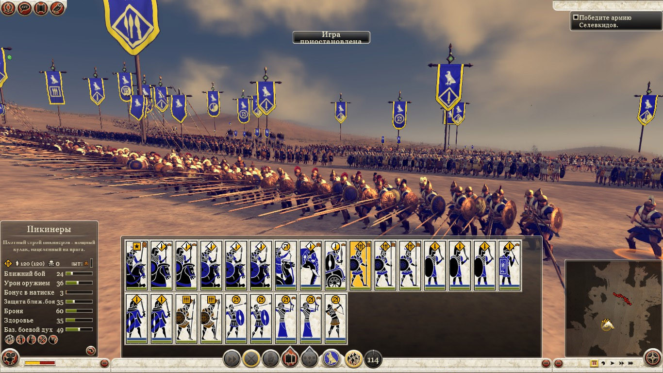 С «тактикой» дела обстоят точно так же, как со «стратегией»: абсолютная внешняя схожесть с Total War’ами «второго поколения» (Rome, Empire, Napoleon, Shogun 2) и очень серьезные, в чем-то даже революционные, внутренние изменения. Проведя пару-тройку сражений, знатоки серии с удивлением обнаружат, что баланс юнитов другой — более реалистичный и близкий к суровым историческим реалиям. Лучники практически бесполезны против легионеров, вставших в «черепаху», «голозадые» ополченцы ничего не смогут сделать с опытными мечниками в тяжелой броне даже при соотношении сил 10:1, один удачный и своевременный чардж парфянских катафрактов решает исход битвы за пару секунд, и т.д., и т.п., всего и не перечислишь. Вишенка на торте – схватки двух эллинистических армий, с их тонкими различиями в длине копий и боевом потенциале индийских и африканских слонов. Удивительно, но теперь такие нюансы легко даются ИИ, так что какая-нибудь Рафия выглядит в несколько раз более достоверно, чем в первом «Риме».