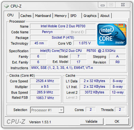 | CPU-Z — отличный бесплатный инструмент для получения различных сведений о вашем ПК. При разгоне процессора эту утилиту имеет смысл использовать для контроля за напряжением питания и тактовой частотой |
