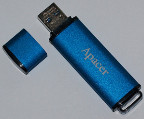 Для проведения тестовых испытаний мы взяли модель, оснащенную скоростным интерфейсом USB 3.0. Накопитель HANDY STENO AH552 отличается эффектным дизайном. Его матовый металлический корпус цвета голубой металлик придает ему определенный налет изысканности и элегантности. Кстати, такой корпус помимо декоративной функции несет и еще одну, причем немаловажную, — он защищает флешку от возможных деформаций, а специальный голубой светодиод указывает на активность устройства.