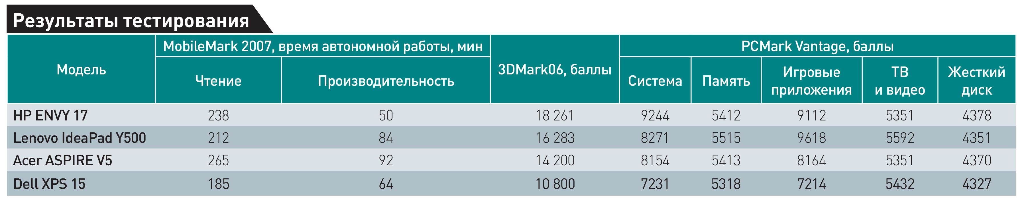 Что же касается наших предпочтений, то «Лучшей покупкой» мы посчитали ноутбук Acer ASPIRE V5, имеющий хорошие технические характеристики при относительно демократичной цене, тогда как «Выбором редакции» стала модель HP ENVY 17. Все-таки, несмотря на немалую цену, она оказалась наиболее привлекательной благодаря высокой производительности и хорошему дизайну.