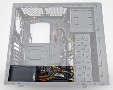 И наконец, последним штрихом к общей картине стал блок питания, от которого требовались высокая эффективность и поддержка Haswell. Модель FSP Group Raider была выбрана по трем причинам: вполне достаточный запас мощности в 450 Вт, поддержка Haswell и наличие сертификата 80-Plus Bronze, а также отличная репутация производителя.