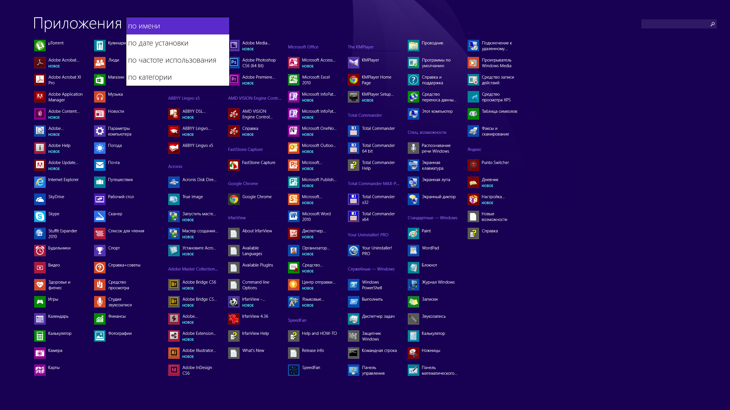 Обновленный экран «Приложения» не похож на меню «Пуск» Windows 7: здесь, например, нельзя упорядочивать приложения в папках. Но можно взять избранные приложения с экрана «Приложения» и объединить их в группы в меню «Пуск», хотя бы частично воссоздав таким образом функциональность Windows 7. Стоит отметить, что многие пользователи считают накладываемые Microsoft ограничения искусственными.