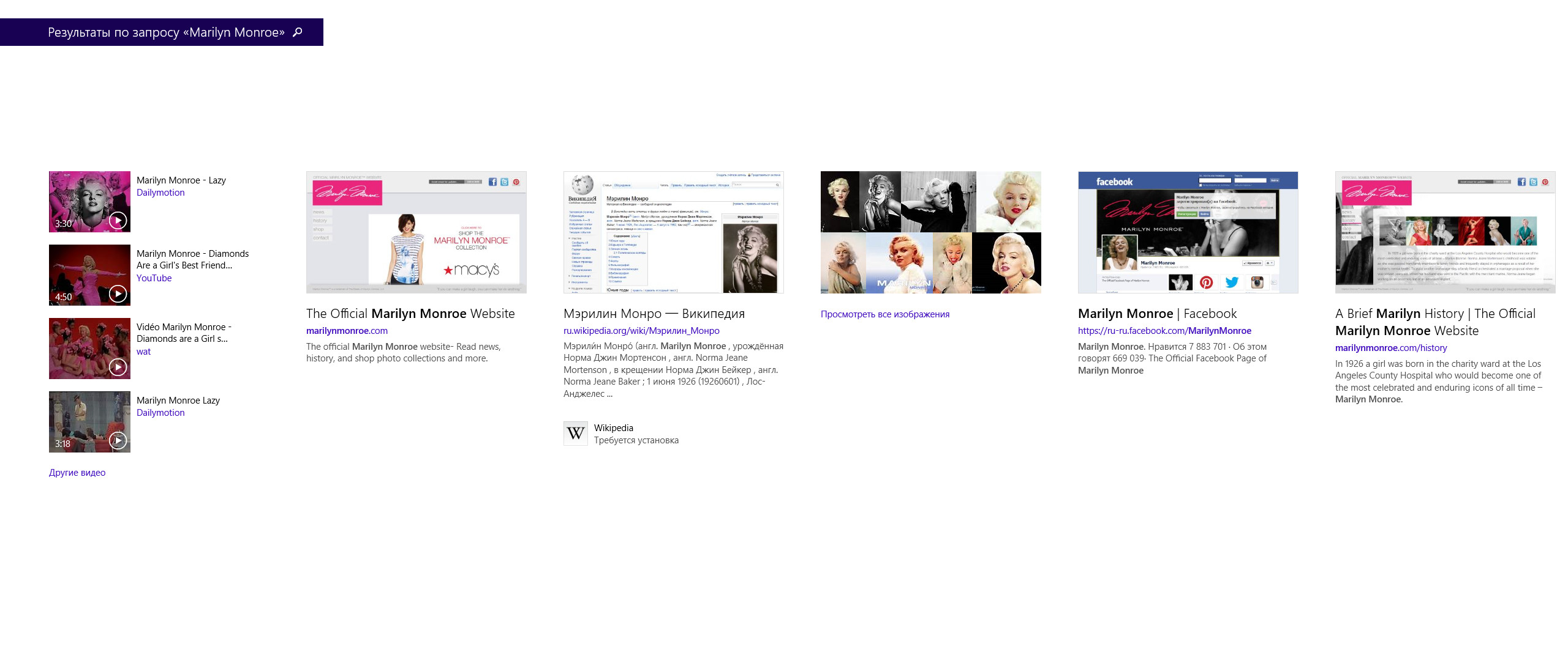 Во внутренней поисковой системе Microsoft результаты, найденные в Интернете, теперь лучше интегрированы с результатами локального поиска. Просто наберите в поисковой строке несколько символов, и программа выдаст все найденные приложения, параметры и результаты внешнего поиска.