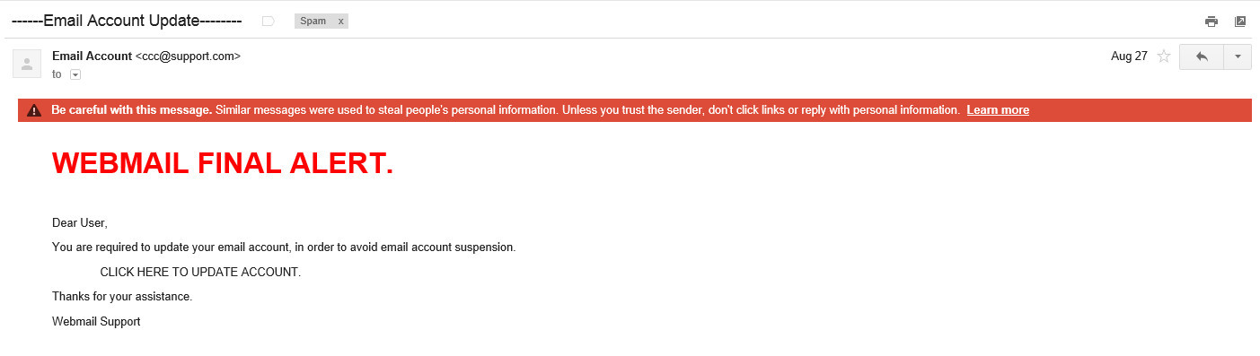 | Выглядит вполне правдоподобно. Хотя многие фишинговые письма сделаны еще искуснее |