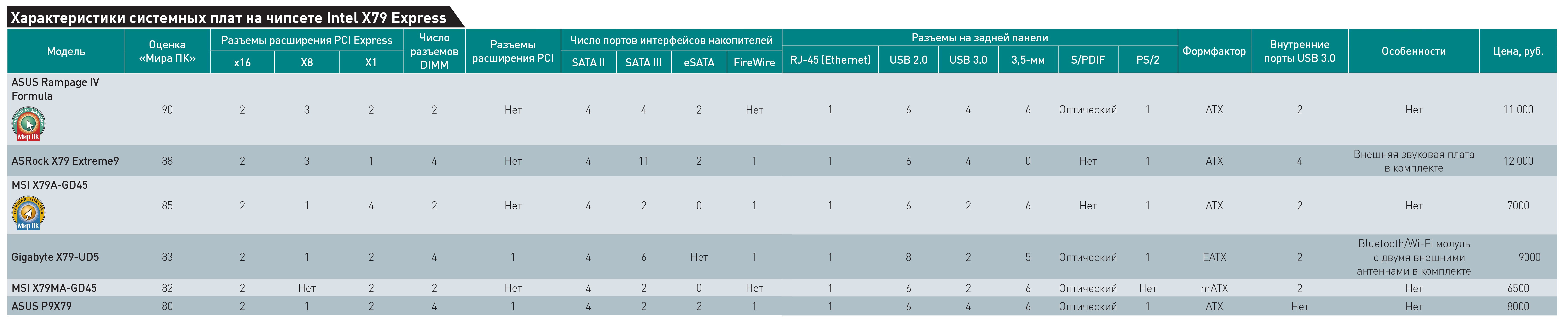 При подведении итогов в лидеры выбилась модель ASUS Rampage IV Formula, которая и стала «Выбором редакции». А вот значок «Лучшая покупка» по праву достался плате MSI X79A-GD45 — на наш взгляд, она обладает приемлемой функциональностью при весьма привлекательной цене.