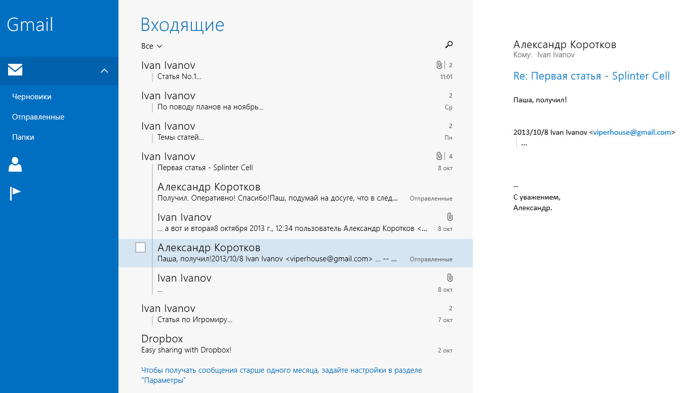 Фактически все приложения современного интерфейса в той или иной мере были переработаны. Особенно ярко выглядит обновленное почтовое приложение. Давайте, не вдаваясь особо в детали, посмотрим, что все это значит для Windows.