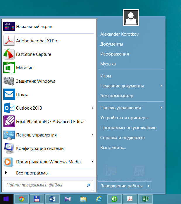 | Вот так ведет себя программа Classic Shell на ПК, работающем в среде Windows 8.1 |