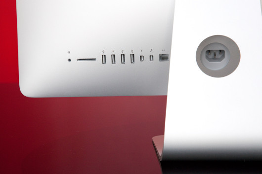 | Порты iMac расположены на задней панели. Это повышает эстетичность дизайна, но создает дополнительные неудобства для пользователей, которые часто подключают и отключают периферийные устройства |