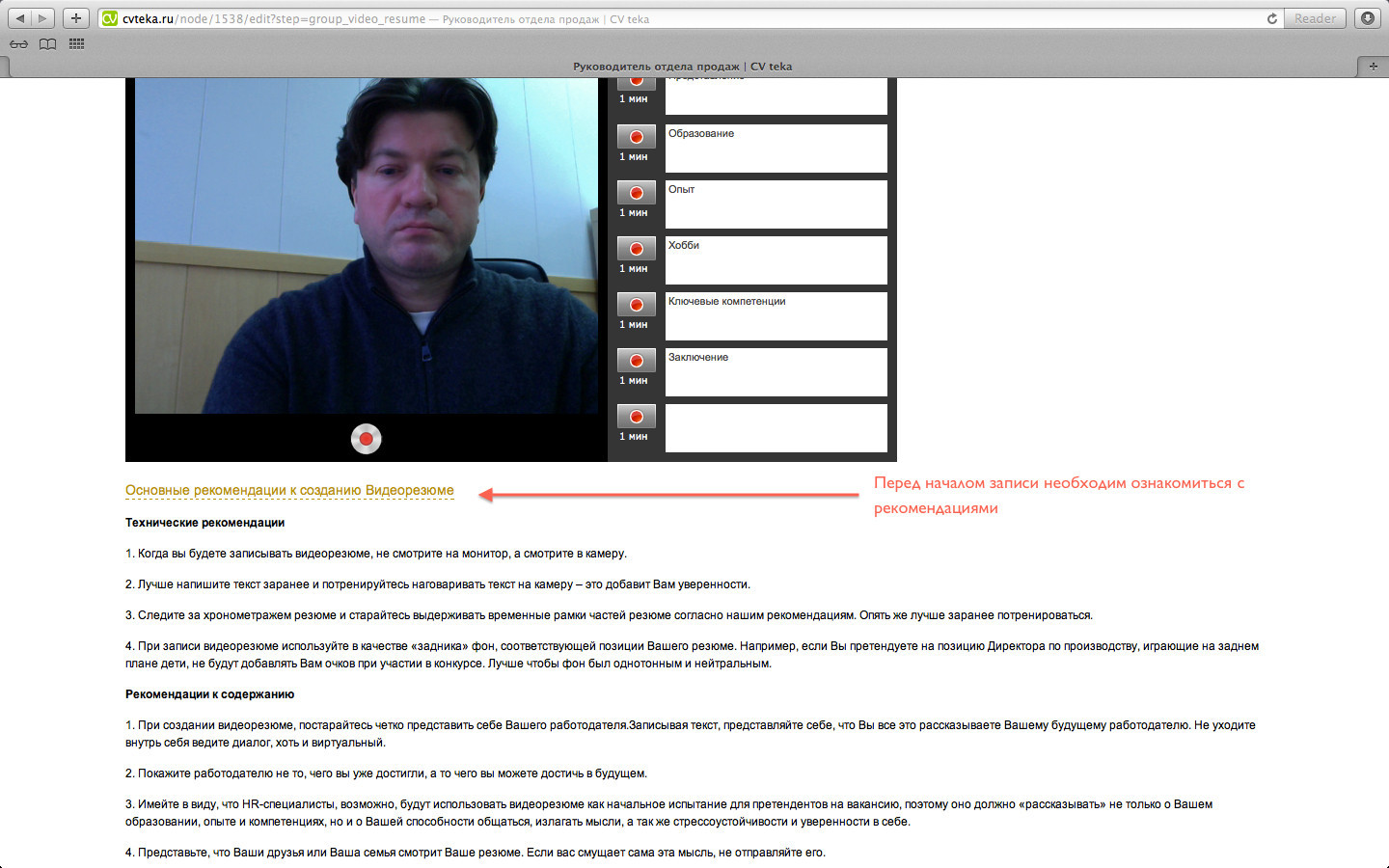 | Советы по подготовке видеорезюме на www.cvteka.ru |