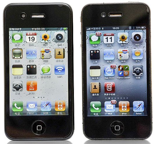 | Устройство hiPhone 5 (справа), появившееся после утечки фотографий телефона Apple, начало свой путь на китайском рынке еще до начала продаж настоящего iPhone 5 и предлагалось по цене от 31 долл. |