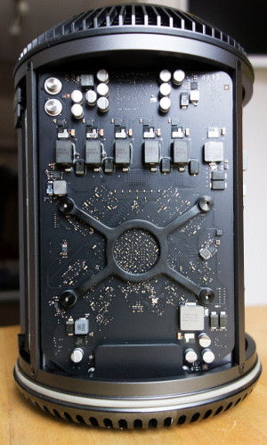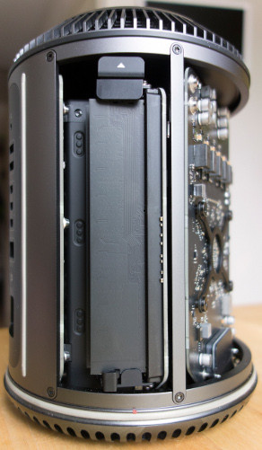 | Со снятой крышкой Mac Pro выглядит едва ли не более эффектно, чем с ней. Это просто какой-то оргазм инженерной мысли. Все не только продумано до мелочей, но и просто красиво |