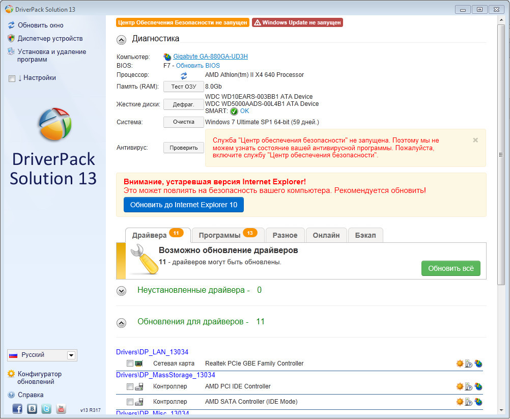 По просьбам читателей мы вновь публикуем полезную программу DriverPack Solution, способную самостоятельно определить, какое оборудование установлено в системе, и автоматически инсталлировать необходимые драйверы, причем без подключения к Интернету.