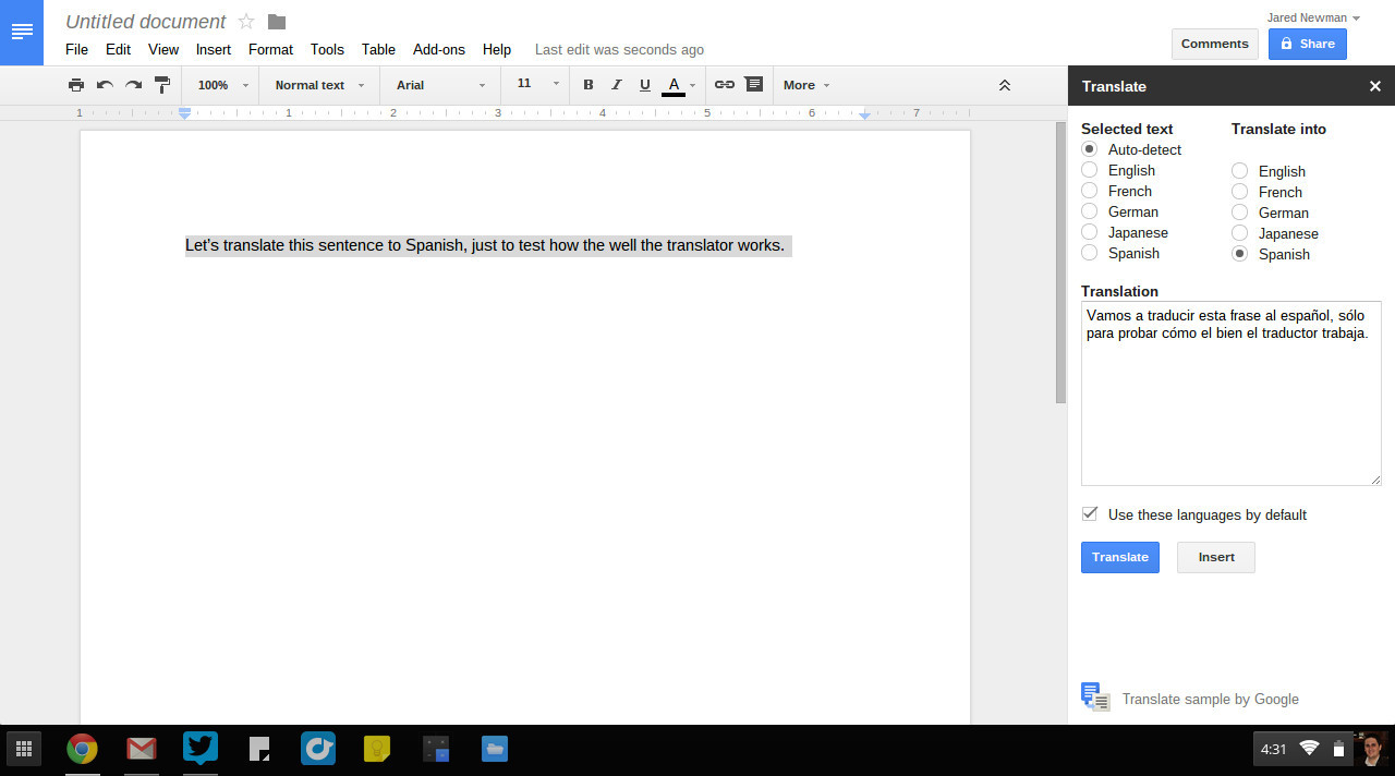 Если вы часто пользуетесь «Переводчиком Google», модуль расширения Google Translate поможет вам сэкономить немало времени. Вместо того чтобы открывать «Переводчик» в новом окне браузера, выделите текст и переведите его прямо внутри документа.