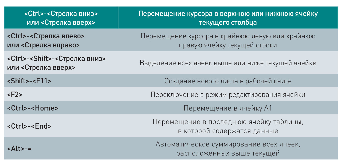 Приведенные здесь восемь комбинаций клавиш особенно полезны для быстрого перемещения по электронным таблицам Excel и выполнения часто встречающихся операций.